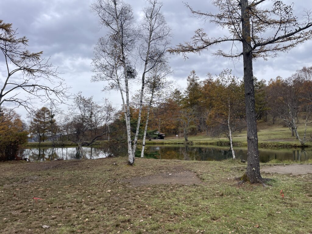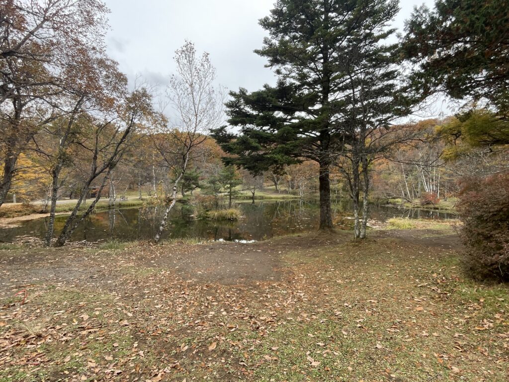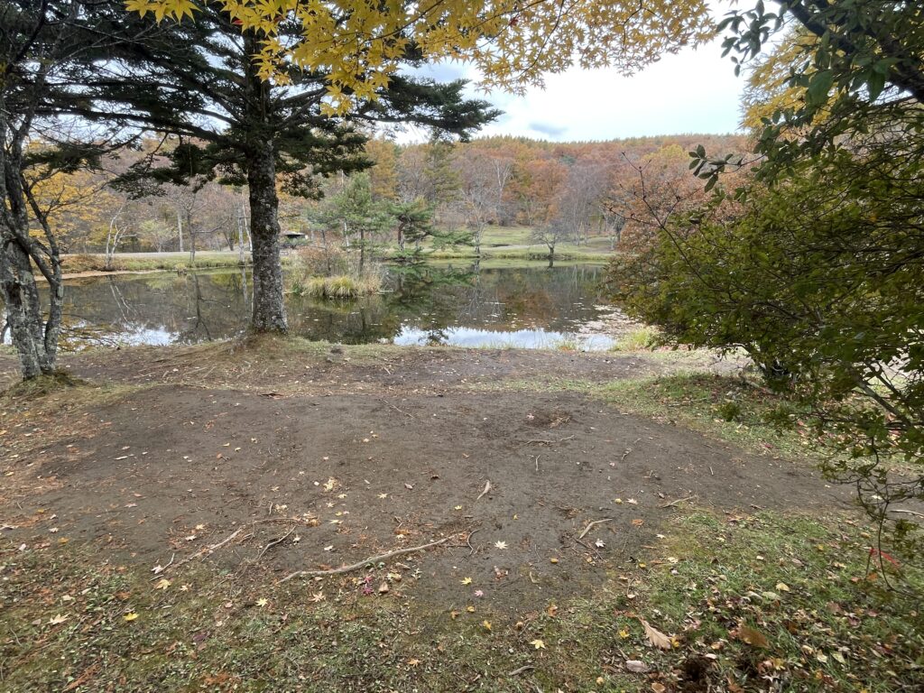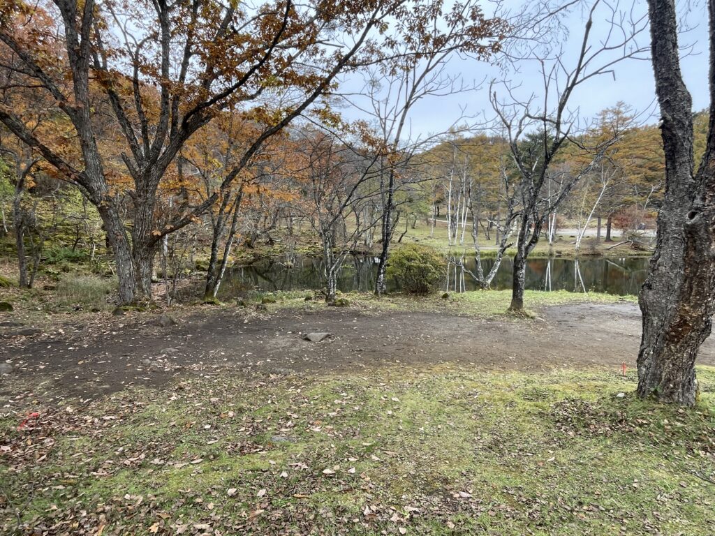 池向こうから白樺と一緒の写真が撮れる映えサイト!ソロ・小さめテントの方おすすめ