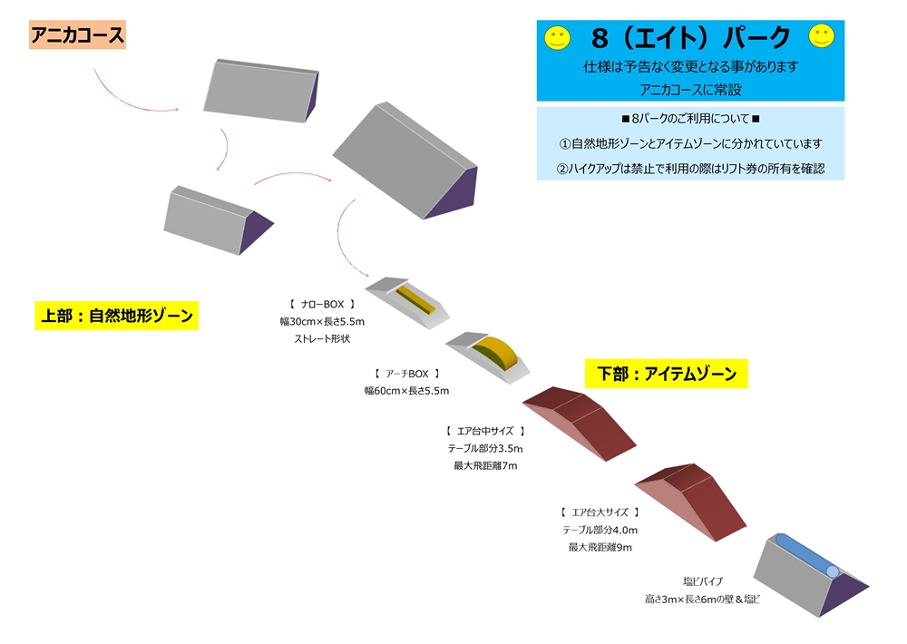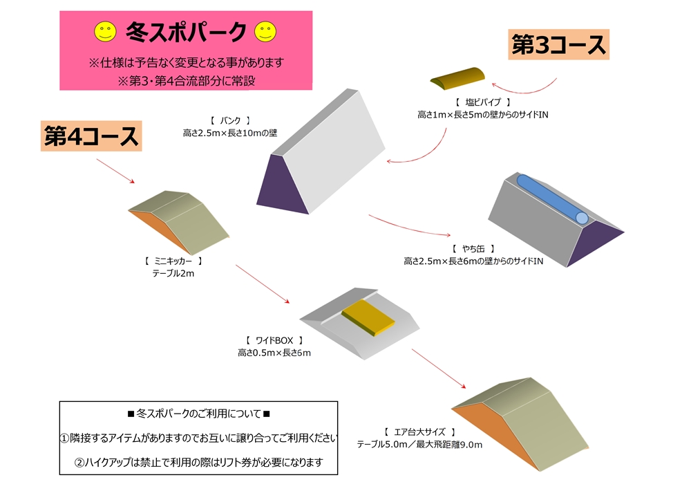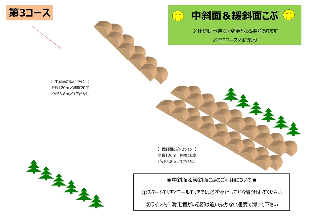 ■緩斜面こぶ:2ライン/全長120m/3.8mピッチ